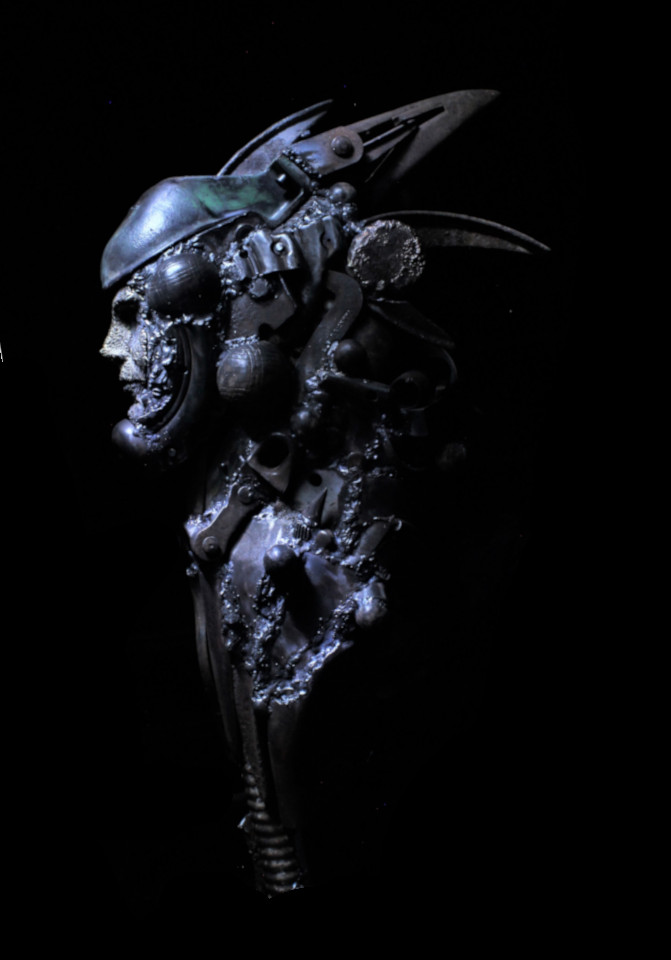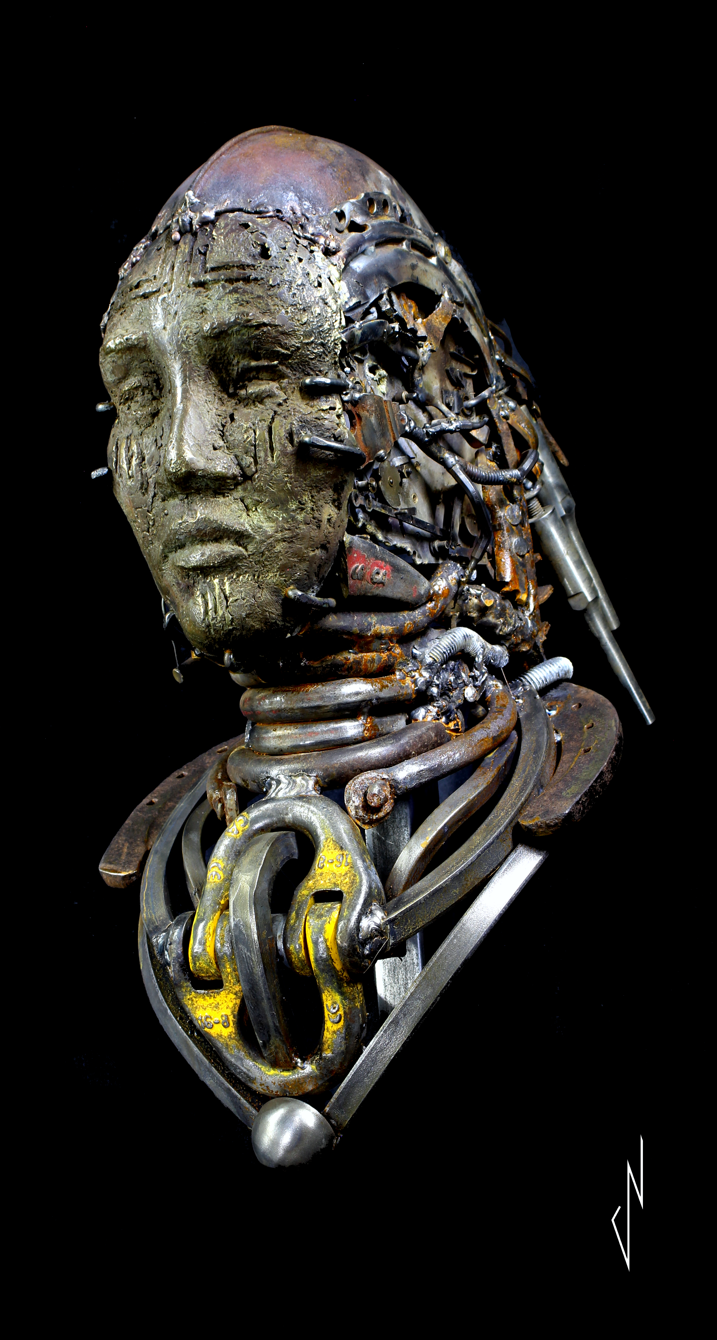 je contraste l’humain avec la machine.mes pieces racontent comment l’homme pourrait finir a force de toujours vouloir produire plus au detriment de la nature.
